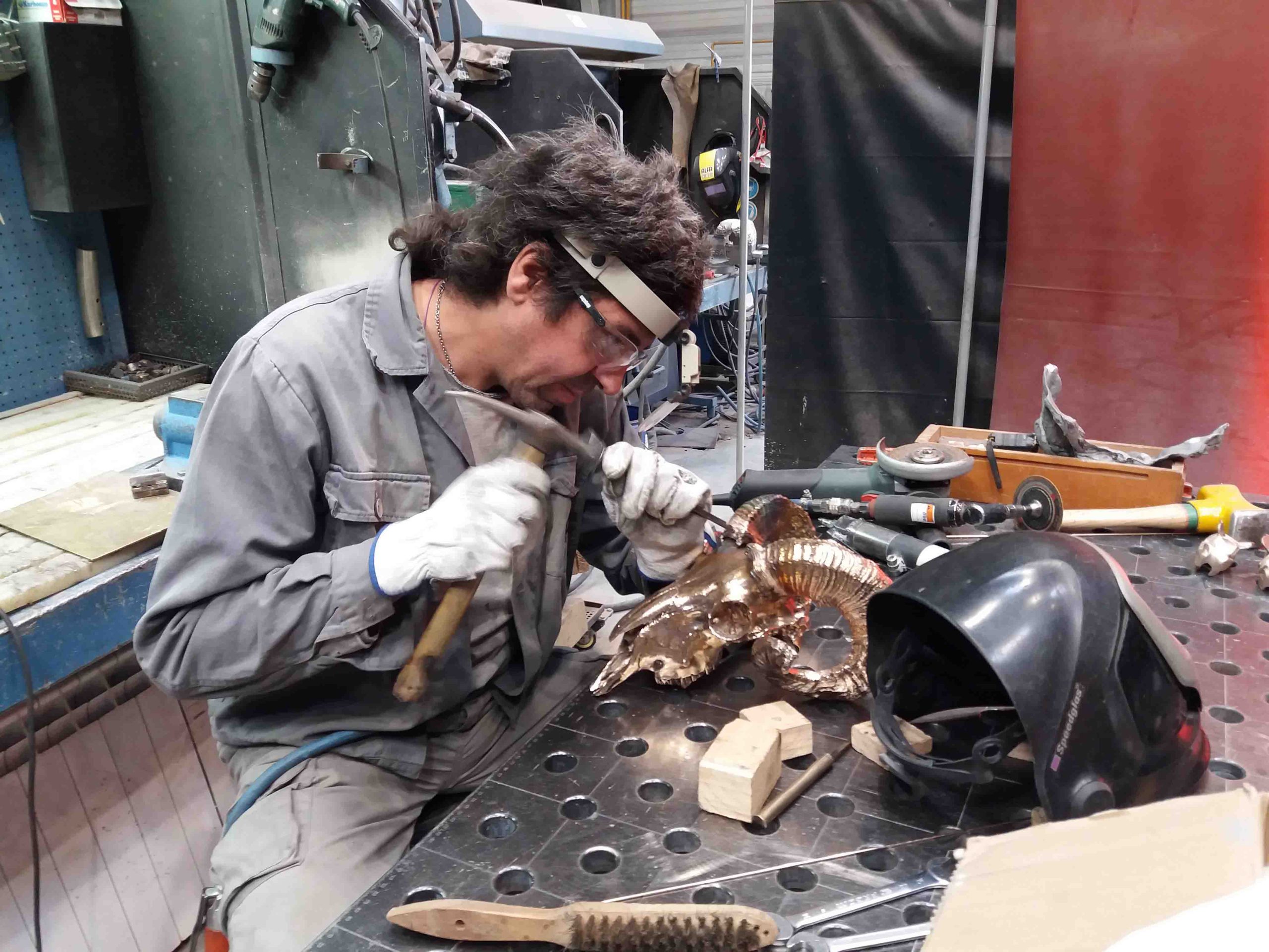 Amón es una pieza escultórica que toma como referencia la fuerza simbólica del cráneo de carnero, reinterpretándolo desde un lenguaje geométrico y contemporáneo.
