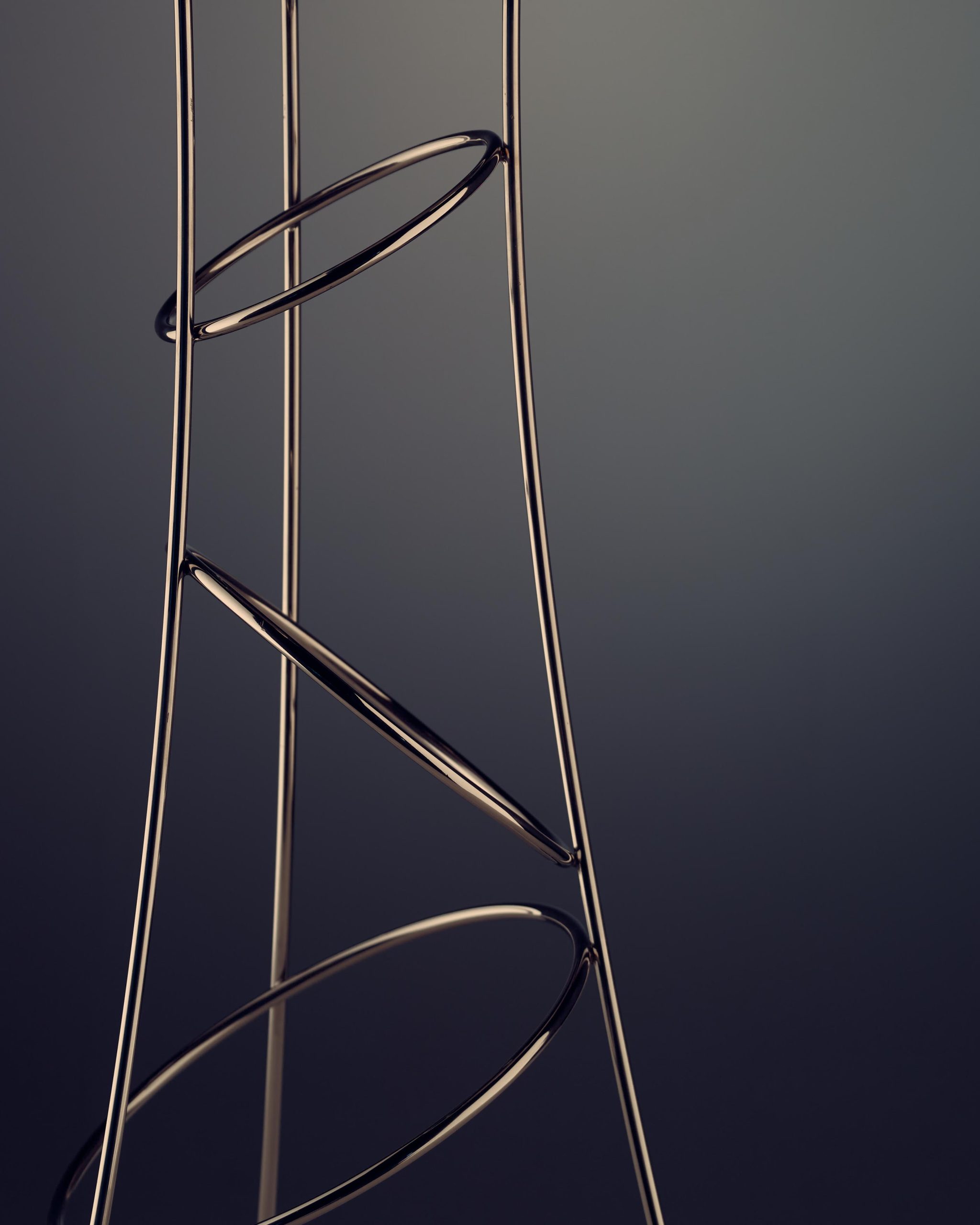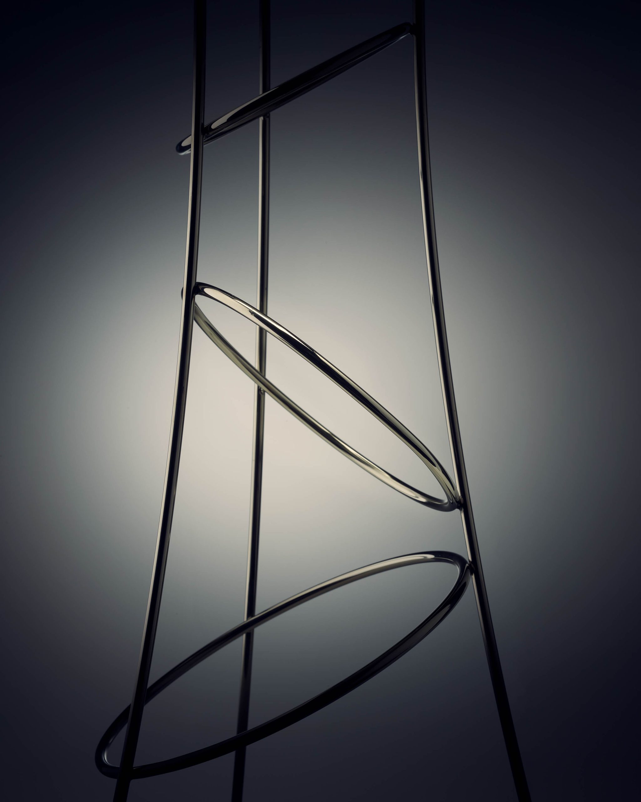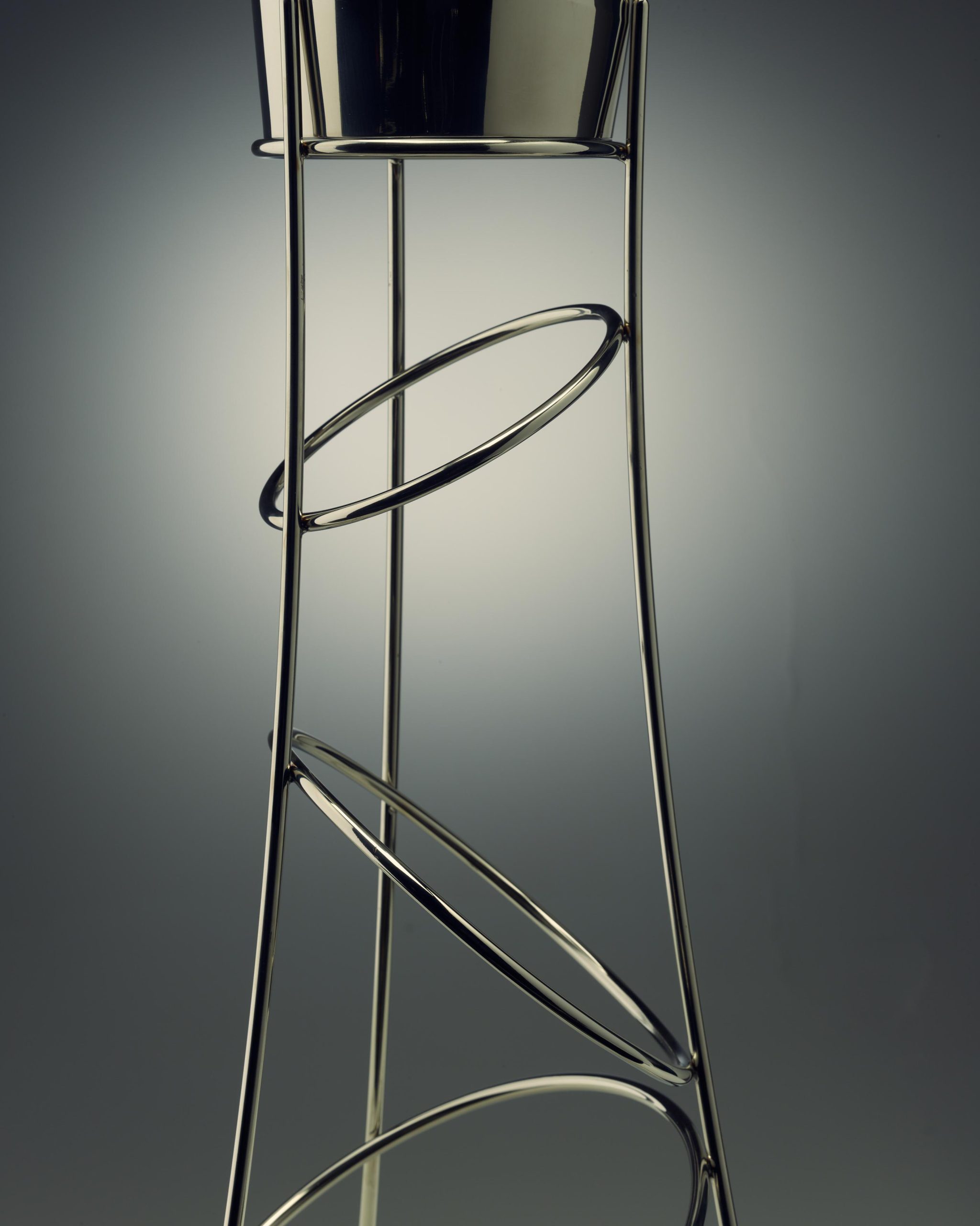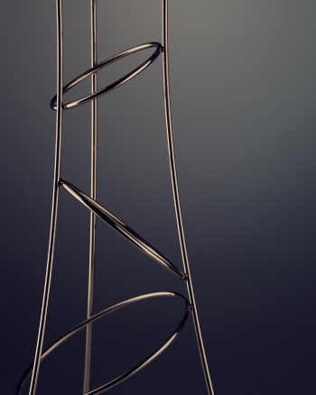 Realizado en acero inoxidable, su diseño se define por una presencia vertical y una estructura que combina ligereza visual con solidez material. Más allá de su uso, introduce un gesto dentro del espacio, convirtiéndose en un elemento que acompaña la experiencia desde lo estético y lo funcional.