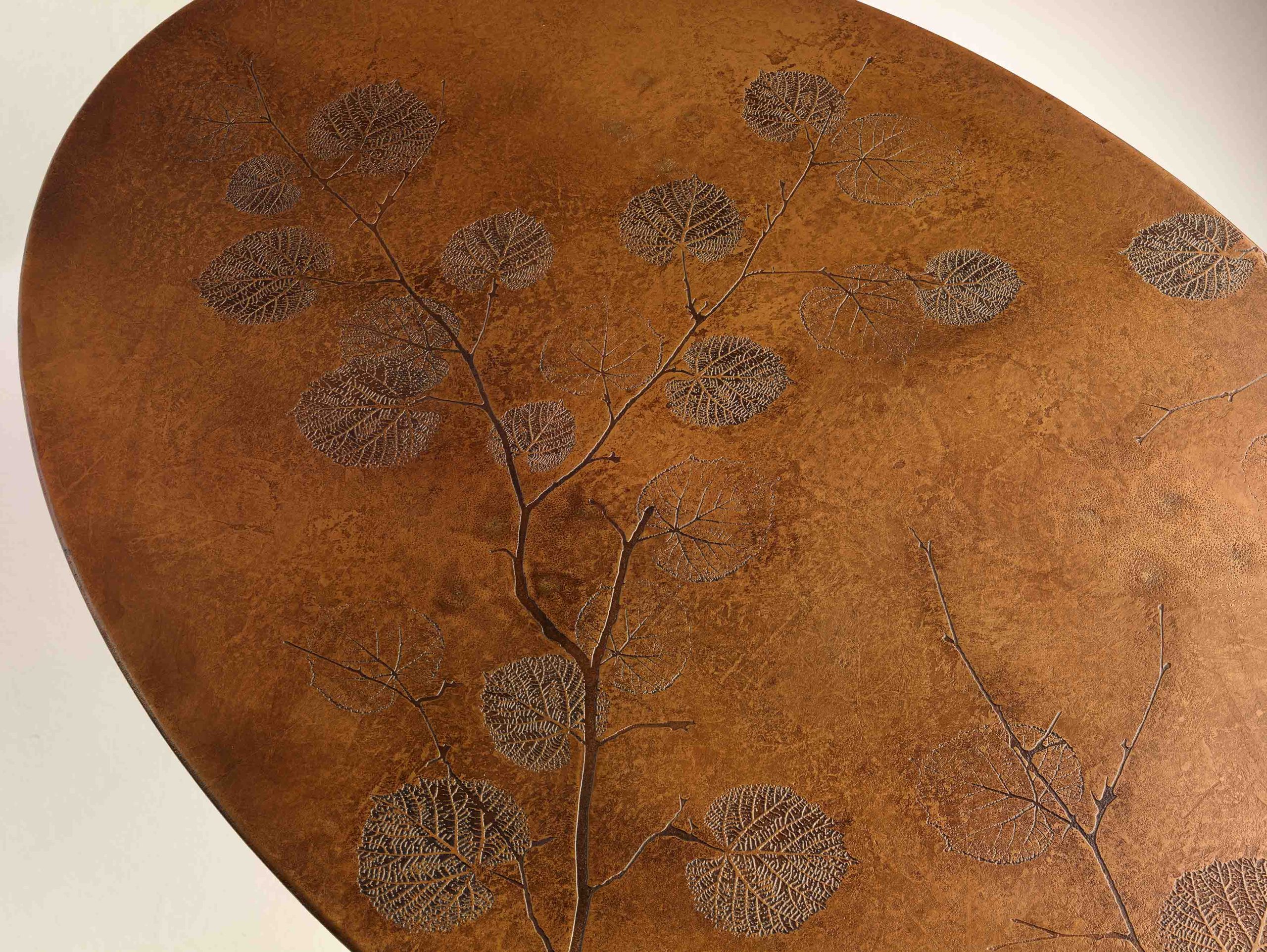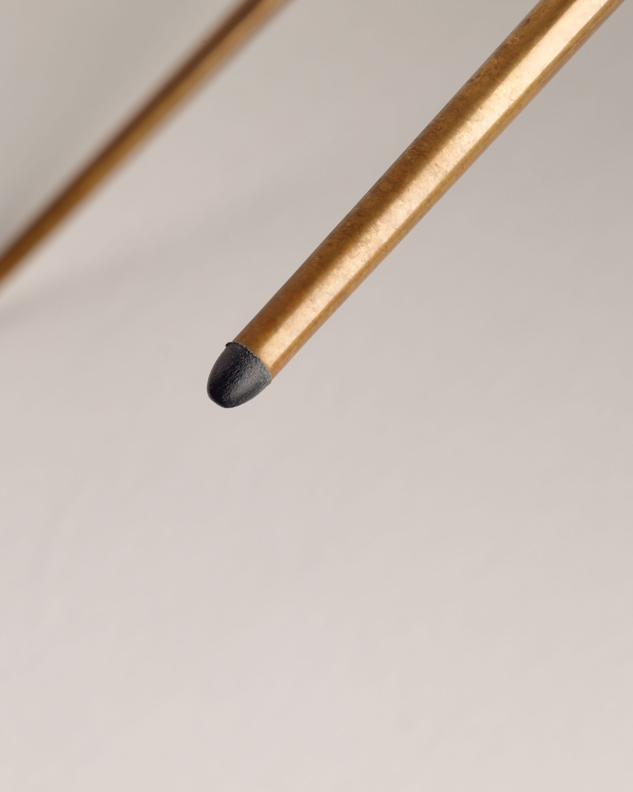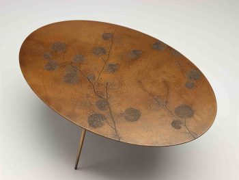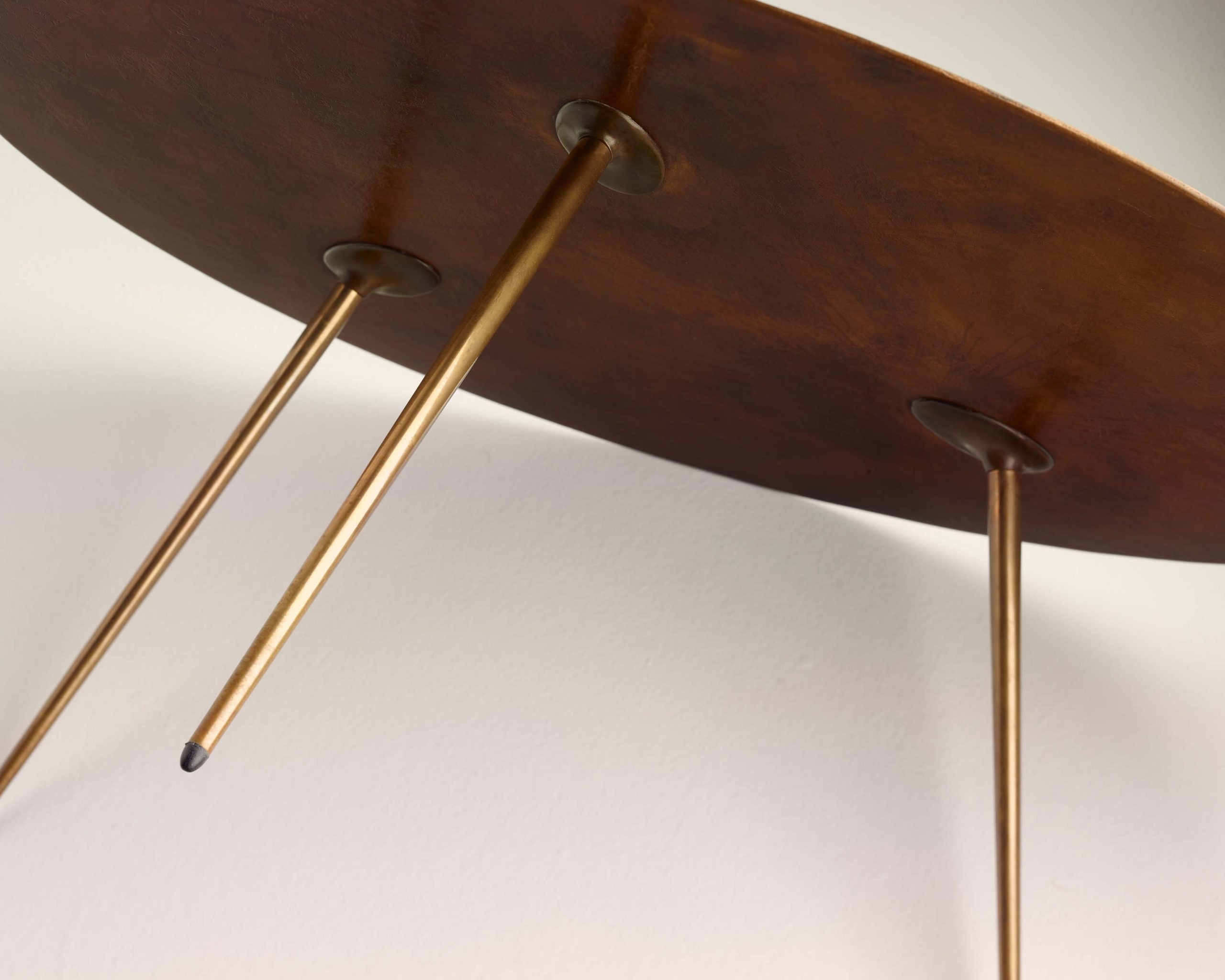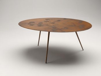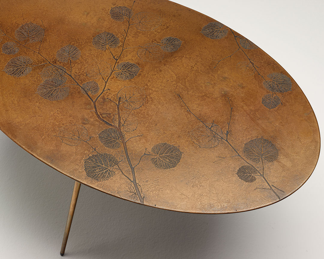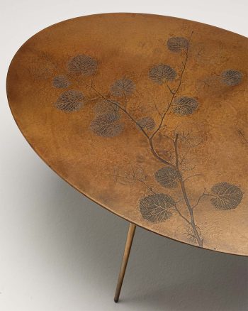 Realizada en bronce, su construcción pone el foco en la materialidad y el equilibrio, generando un objeto que, sin recurrir a gestos formales complejos, transmite solidez y continuidad. Su escala y proporción la convierten en una pieza versátil, capaz de integrarse con naturalidad en distintos contextos.